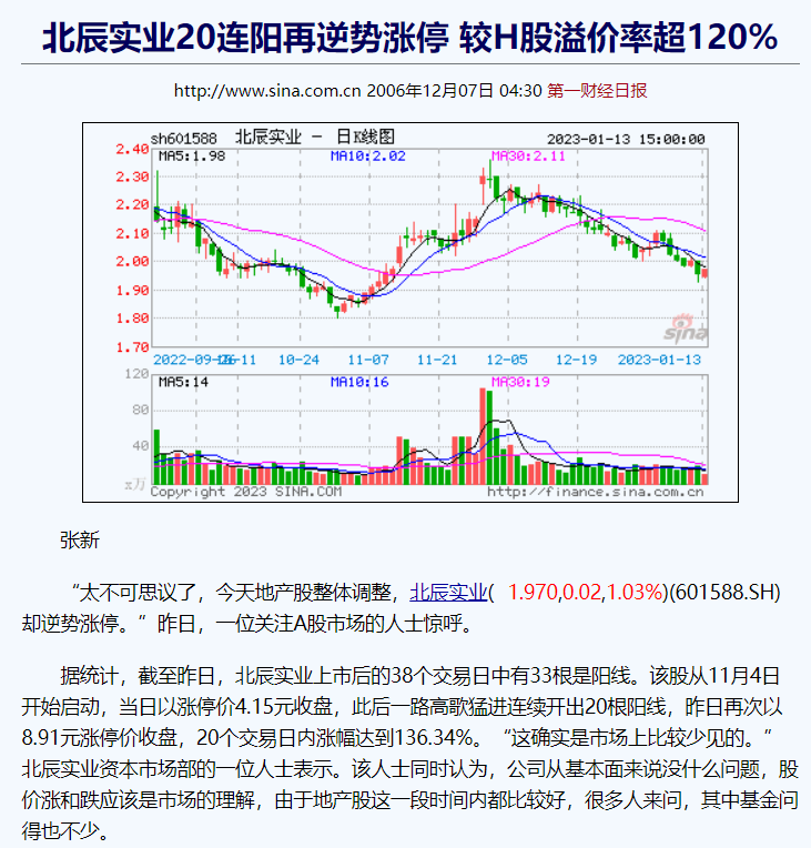 最经典的连阳,无疑要属于北辰实业,当年刚上市的时候的连阳!还是在2006年,相信只有老股民才记得了~