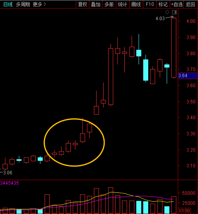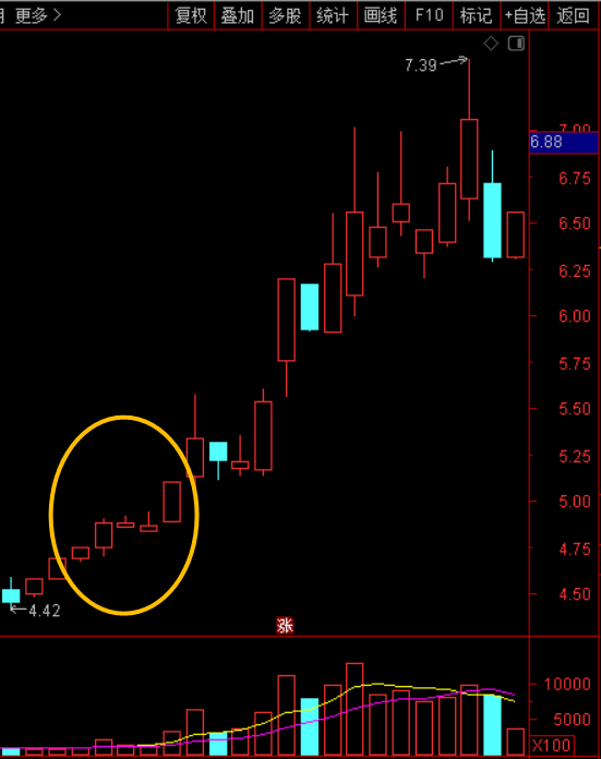这种小阳,在日K线图中体现的非常明显,连续并且集中,在某一阶段,不断的收出这种小阳线,同时每天整体的上涨幅度也并不是很大,但是最主要的就是每天的K线能够保持连续不断的收出小阳线,同时可以从K线图中鲜明的看到K线图的重点在不断的上移。