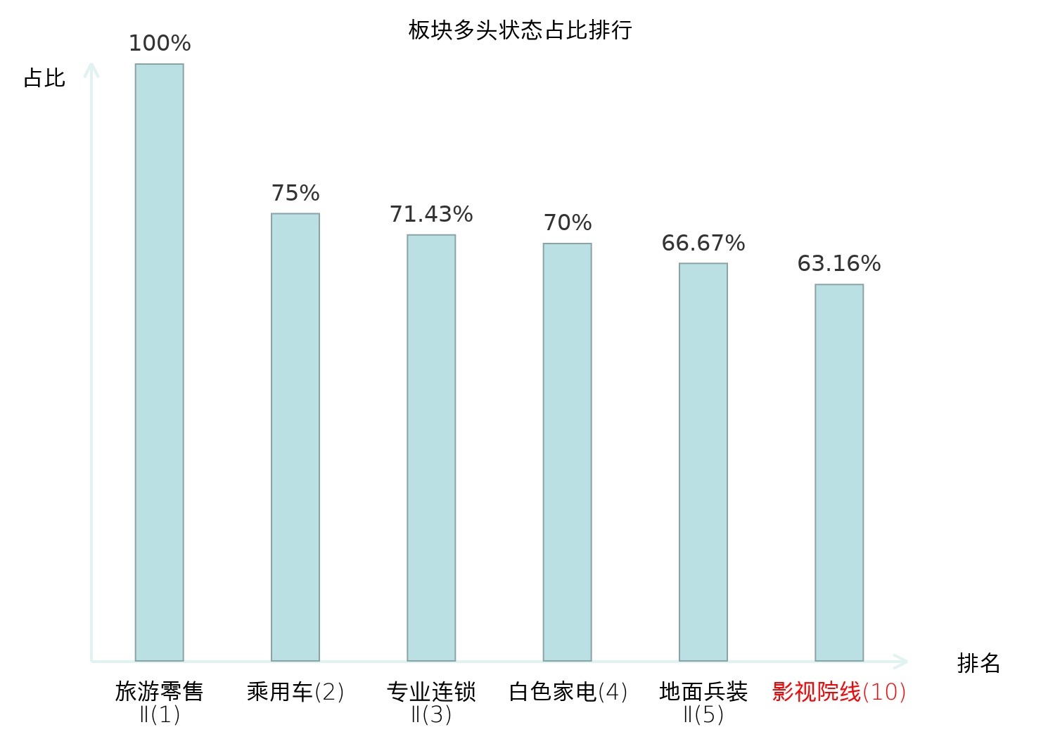 全市场所有行业板块中主力多头状态占比排名中,旅游零售Ⅱ板块位居第一。焦炭Ⅱ板块名次提升最快,较昨日上升105位。