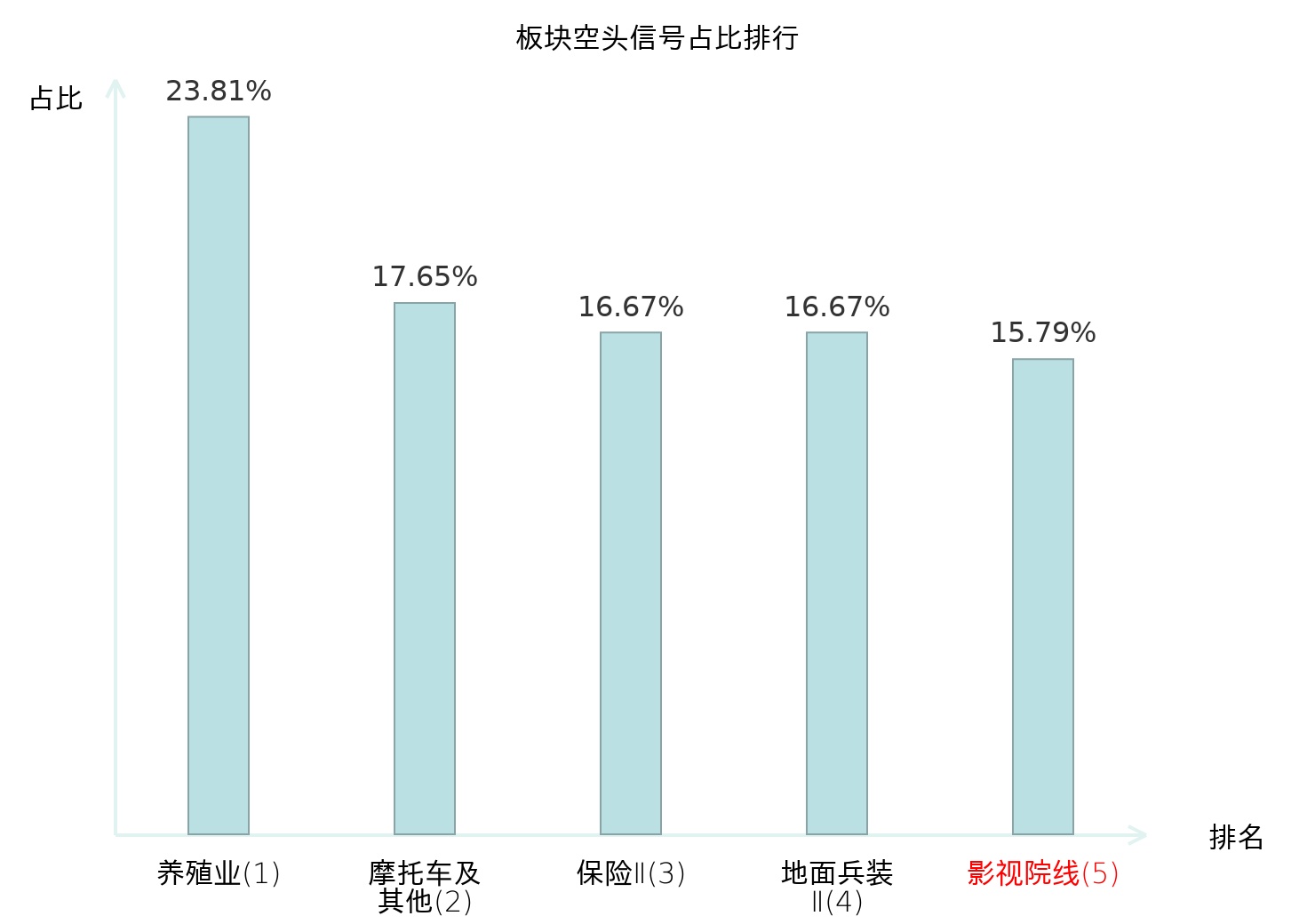 全市场所有行业板块中主力空头信号占比排名中,养殖业板块位居第一。养殖业板块名次提升最快,较昨日上升114位。