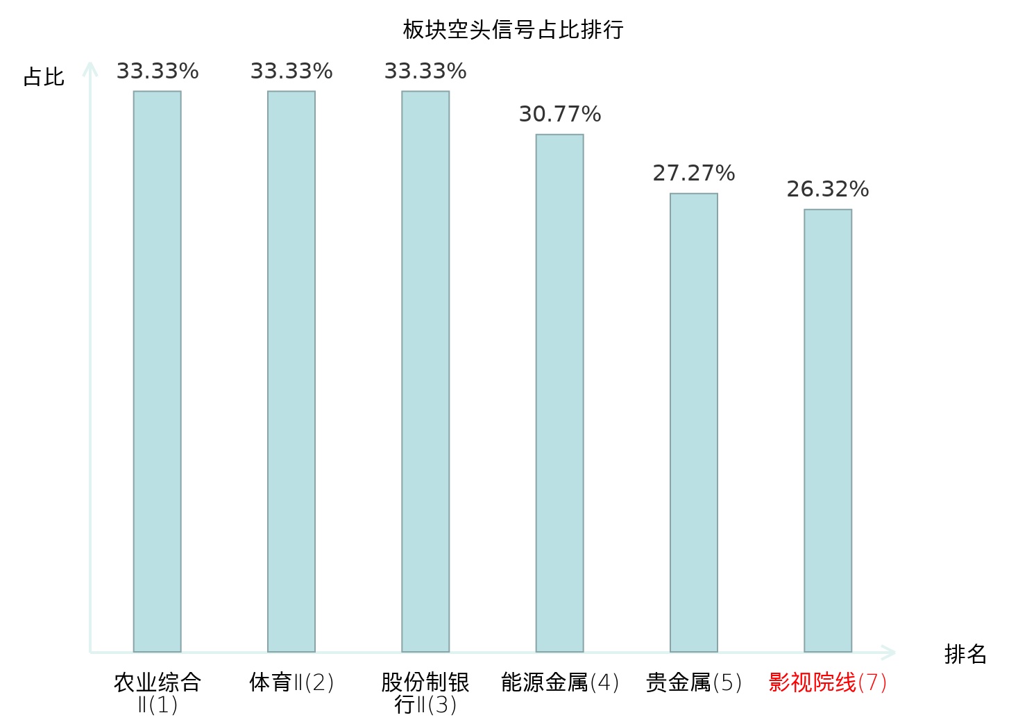 全市场所有行业板块中主力空头信号占比排名中,农业综合Ⅱ板块位居第一。出版板块名次提升最快,较昨日上升115位。