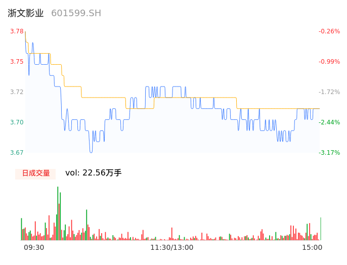 04月03日,浙文影业收报3.70,股价涨幅-2.37%,成交金额8372.29万元,换手率2.53%。