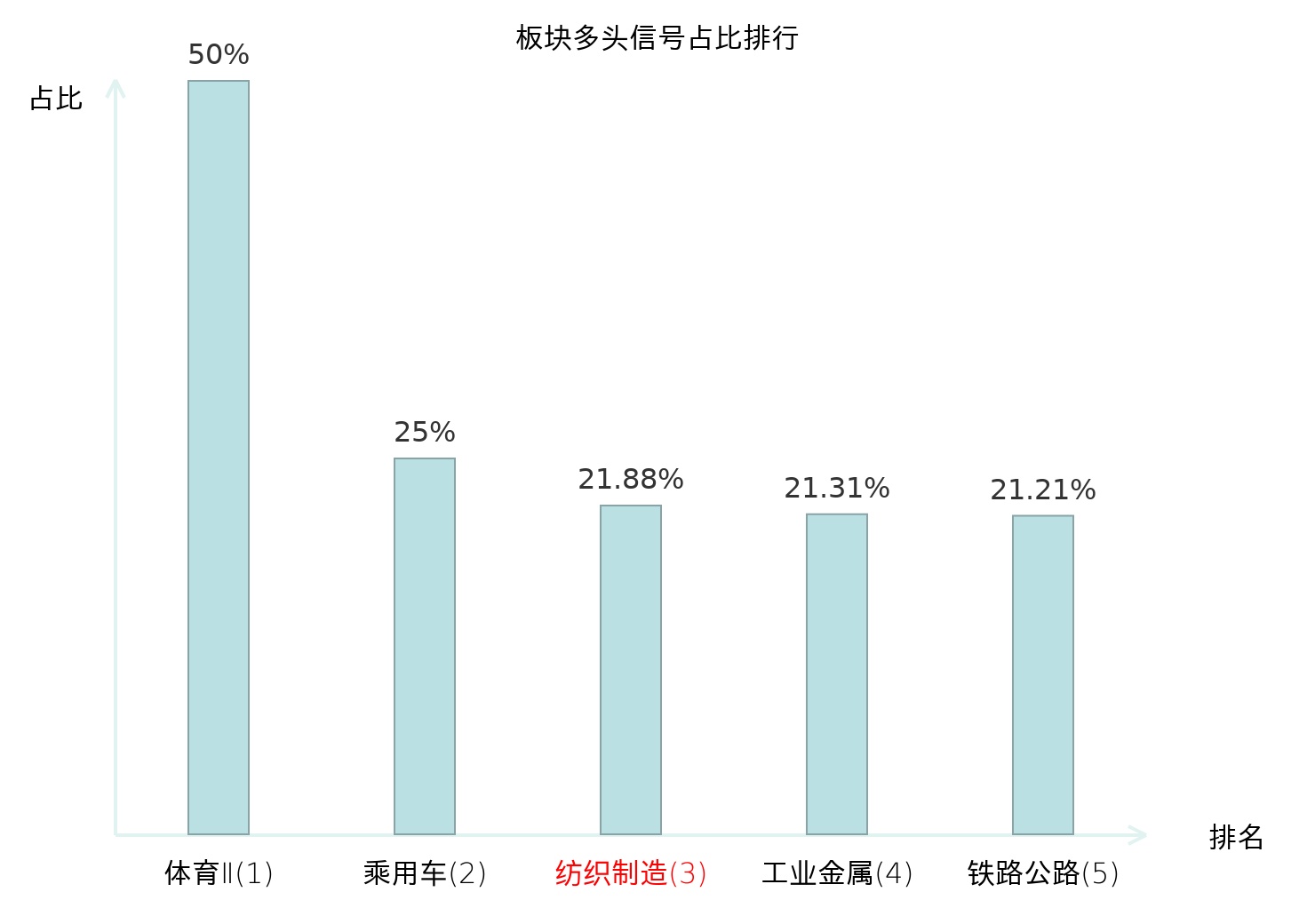 全市场所有行业板块中主力多头信号占比排名中,体育Ⅱ板块位居第一。体育Ⅱ板块名次提升最快,较昨日上升130位。