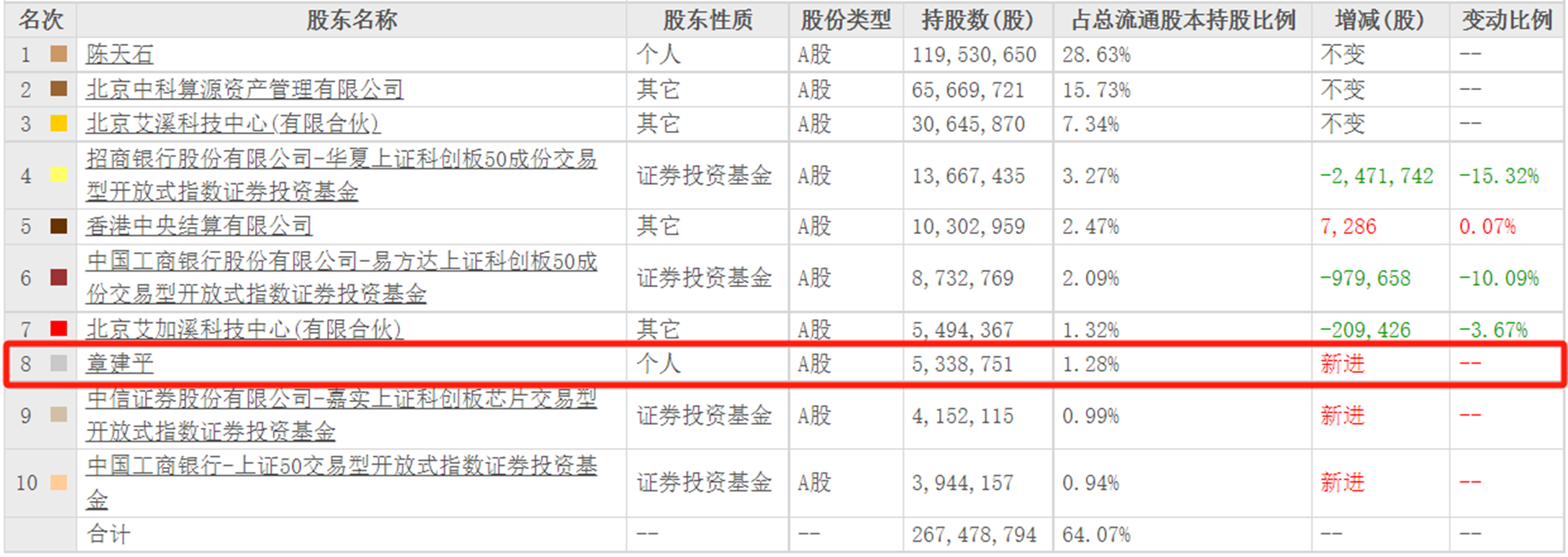 图|寒武纪去年末十大流通股东名单