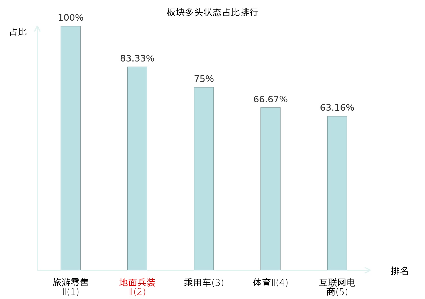 全市场所有行业板块中主力多头状态占比排名中,旅游零售Ⅱ板块位居第一。消费电子板块名次提升最快,较昨日上升52位。