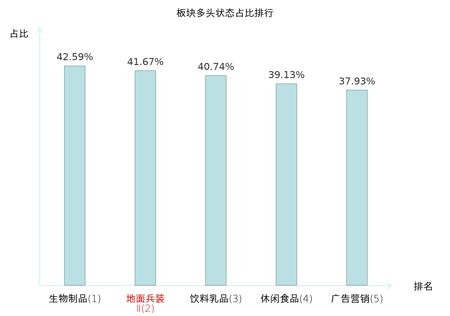 全市场所有行业板块中主力多头状态占比排名中,生物制品板块位居第一。黑色家电板块名次提升最快,较昨日上升65位。