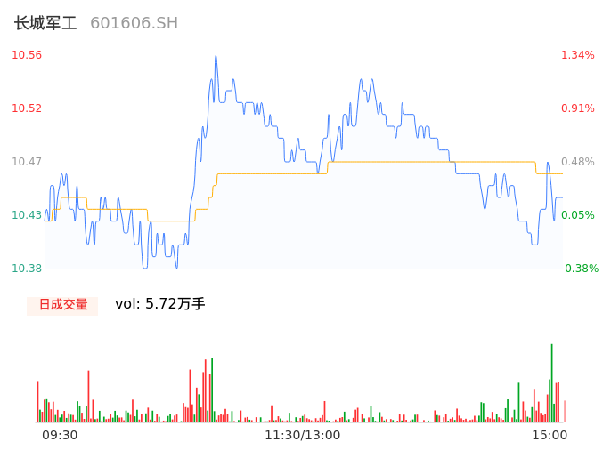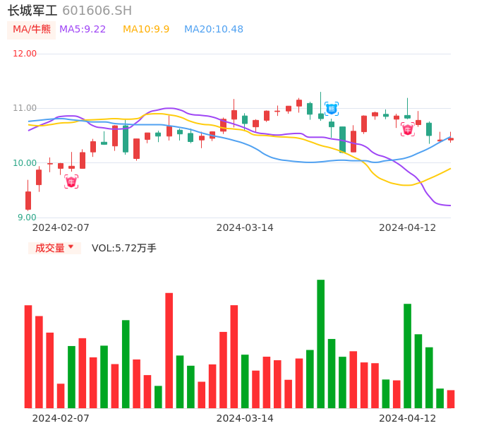 04月12日,长城军工收报10.45,股价涨幅0.29%,成交金额5984.02万元,换手率0.79%。