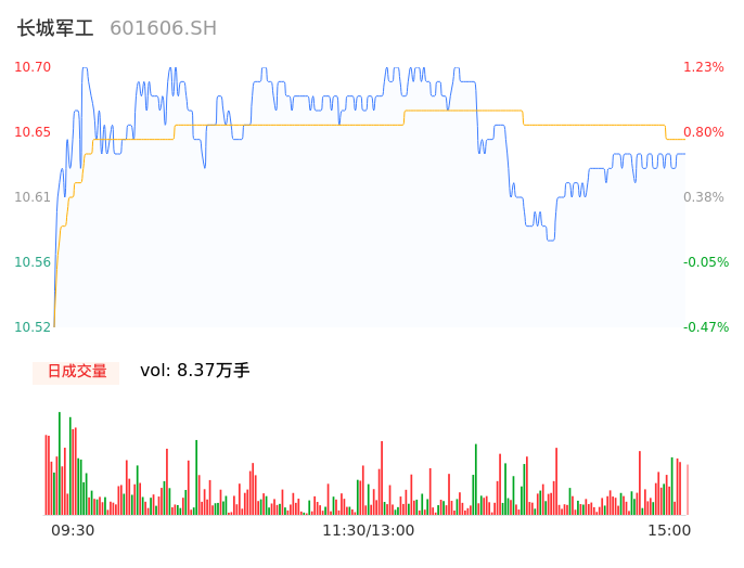 04月26日,长城军工收报10.64,股价涨幅0.66%,成交金额8916.62万元,换手率1.16%。