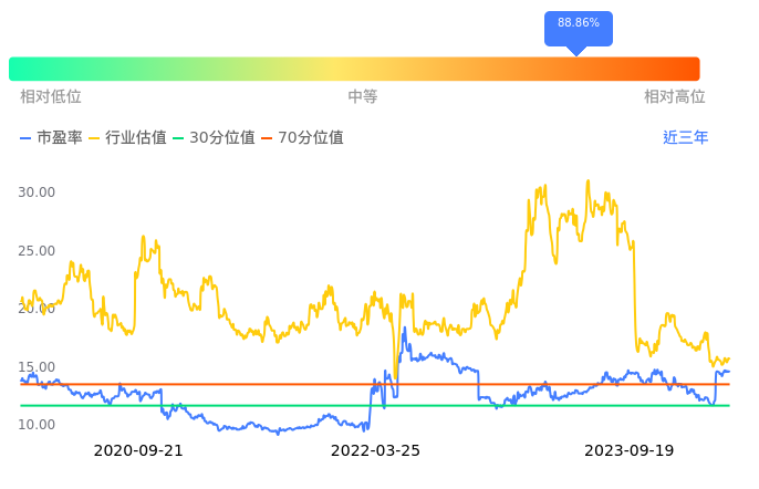 2023年09月20日,上海医药下跌0.56%收于17.85,今日成交金额1.32亿元。下文将从市盈率PETTM、市净率PB、市现率3个角度去分析公司估值情况。
