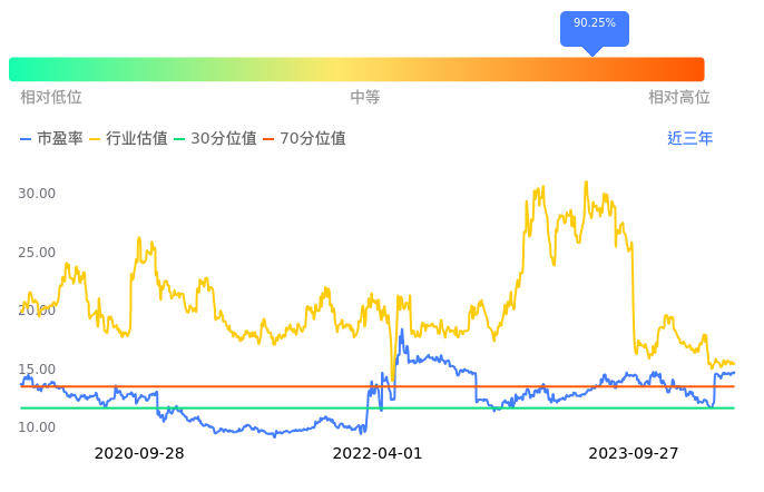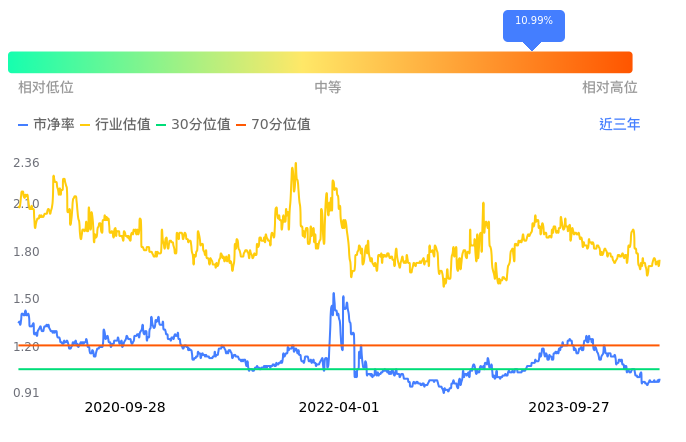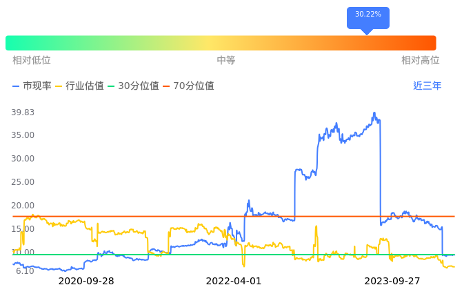 2023年09月27日,上海医药上涨1.12%收于18.11,今日成交金额2.11亿元。下文将从市盈率PETTM、市净率PB、市现率3个角度去分析公司估值情况。