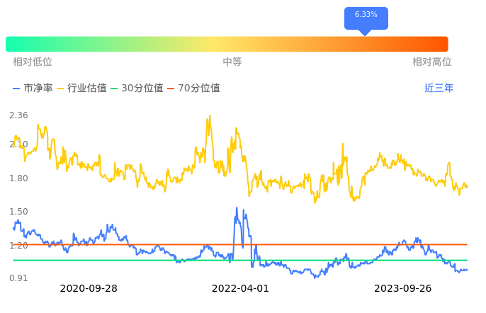 上海医药当前市净率PB为1.02,在所属的医药商业中,市净率PB排4,前五名分别为重药控股市净率0.88、瑞康医药市净率0.96、嘉事堂市净率0.99、上海医药市净率1.02、国药一致市净率1.04。上海医药当前市净率PB为0.98,超过近3年6.33%的历史数据。