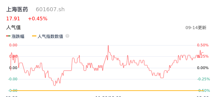 09月14日,上海医药收报17.91,股价涨幅0.45%,成交金额1.42亿元,换手率0.41%。