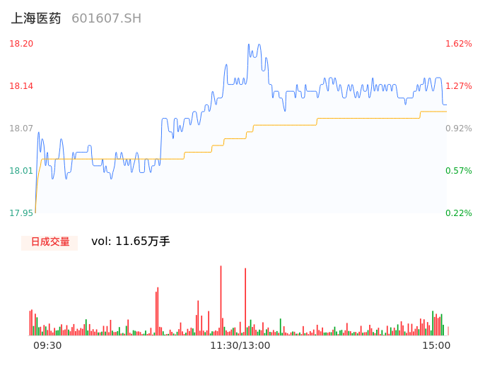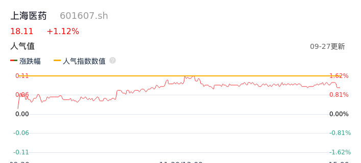 09月27日,上海医药收报18.11,股价涨幅1.12%,成交金额2.11亿元,换手率0.60%。