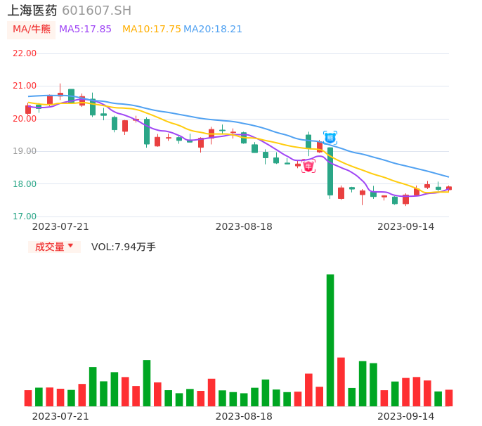 值得注意的是:2023年09月中信证券的朱奕彰/陈竹/宋硕分析师,首次发布关于上海医药的研究报告,标题为:上海医药(601607)2023年中报点评:疫苗减值一过性影响利润 主营业务增长稳健。