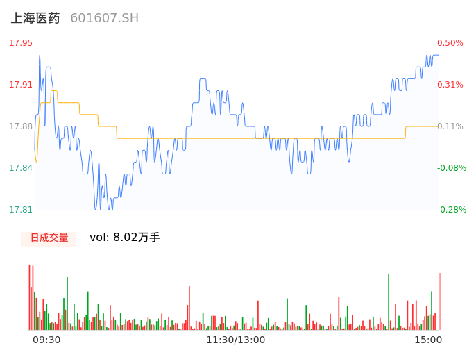 09月19日,上海医药收报17.95,股价涨幅0.50%,成交金额1.43亿元,换手率0.42%。