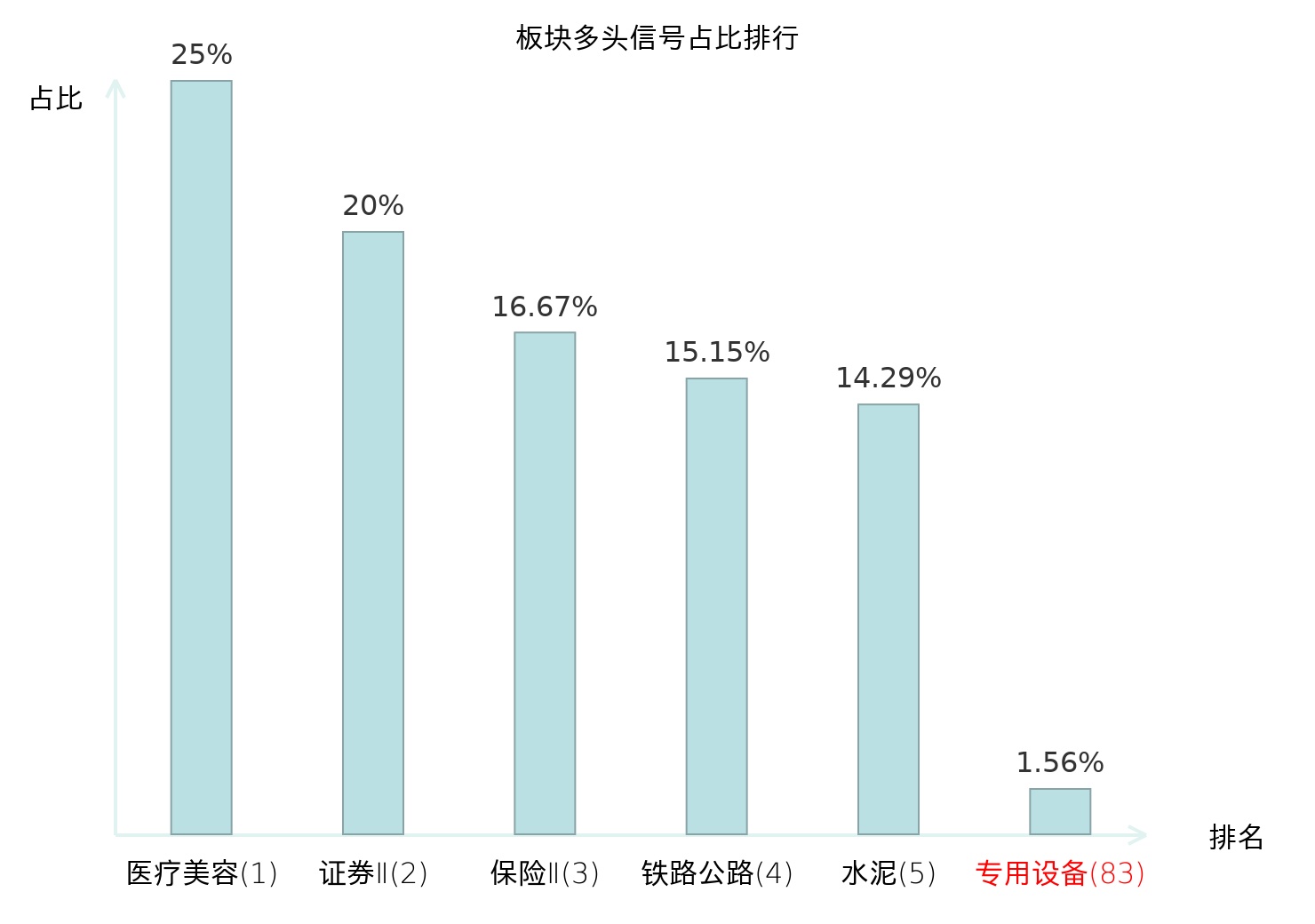 全市场所有行业板块中主力多头信号占比排名中,医疗美容板块位居第一。医疗美容板块名次提升最快,较昨日上升128位。