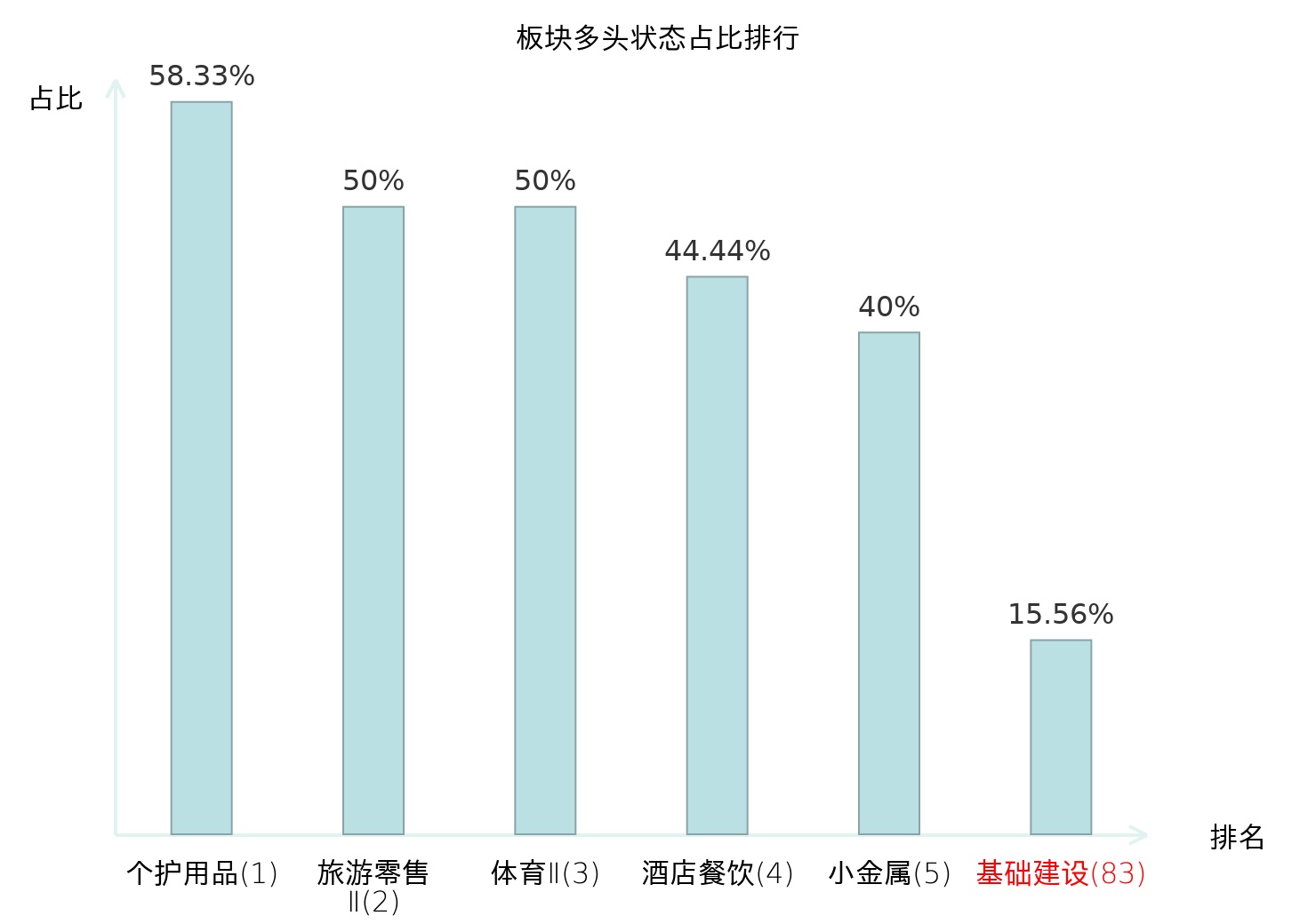 全市场所有行业板块中主力多头状态占比排名中,个护用品板块位居第一。乘用车板块名次提升最快,较昨日上升87位。
