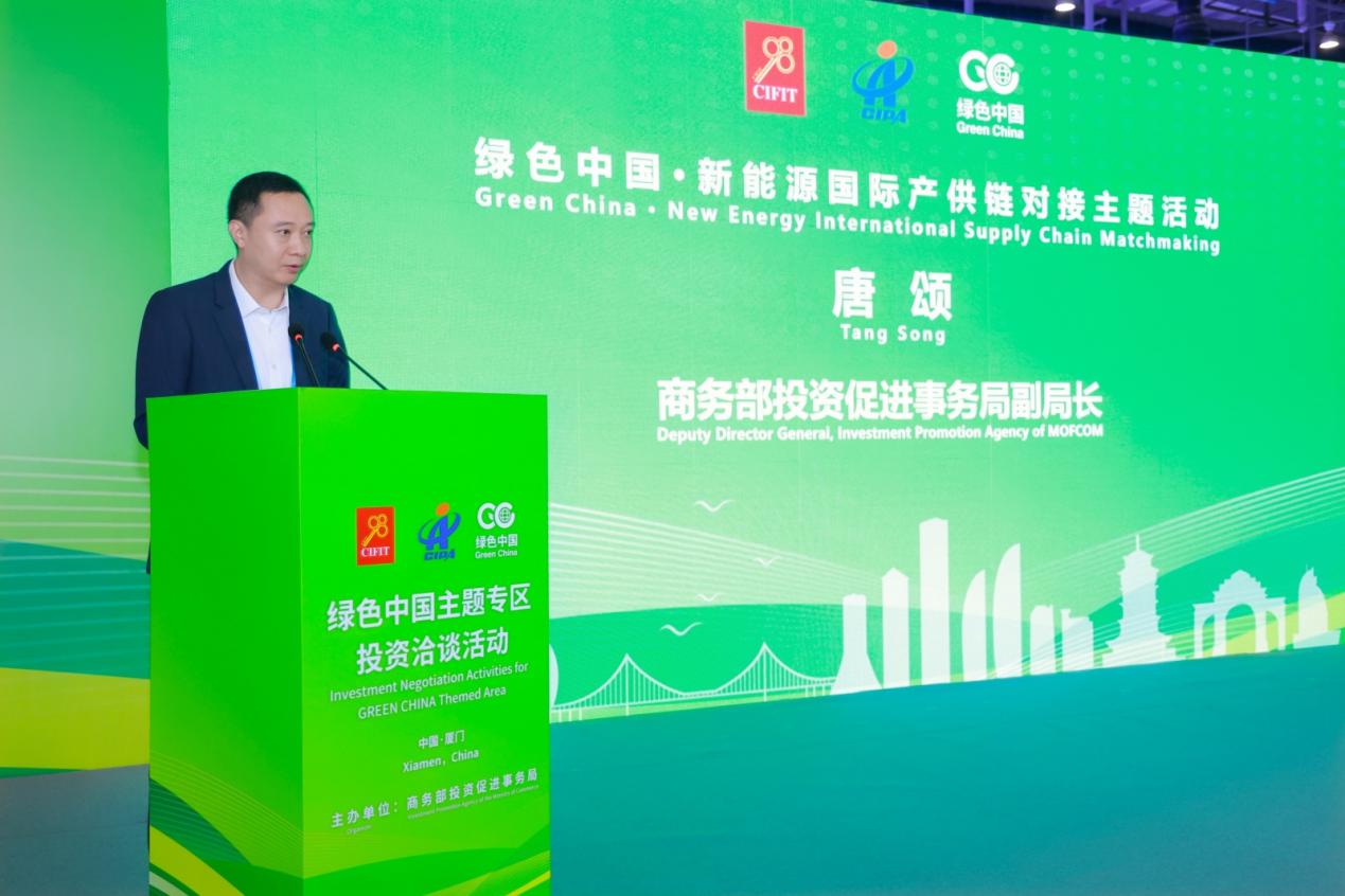 商务部投资促进事务局副局长唐颂在致辞中表示,中国新能源产业已进入创新驱动、全球布局的新阶段,光伏、风电、储能等领域技术领先,产业链完整,正成为全球能源转型的重要力量。中国将持续扩大对外开放,深化国际合作,为全球绿色低碳发展注入新动能。