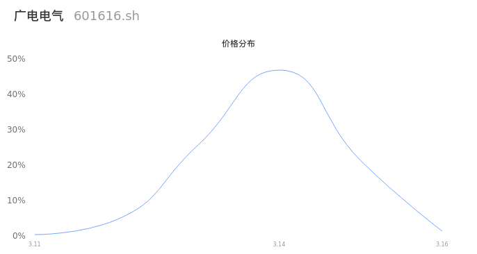 然后我们来看下当日成交的价格分布。经过分析发现,该股票当日成交价格波动低于10个最小波动价位,由于可以参考的样本量非常少,价格分布分析的结果不具有指导意义,下图仅供参考。