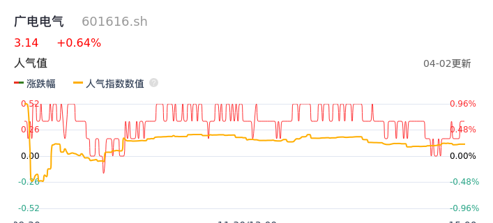 04月02日,广电电气收报3.14,股价涨幅0.64%,成交金额2877.97万元,换手率1.07%。