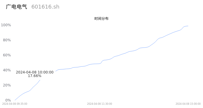 根据成交分布分析,该股票当天放量成交,成交清淡。时间上看,早盘前半小时成交量占据当天总成交量的17.66%;价格上看,成交呈现中间峰。成交分布分析主要研究股票成交的分布特性,不具有预测功能,请知悉。