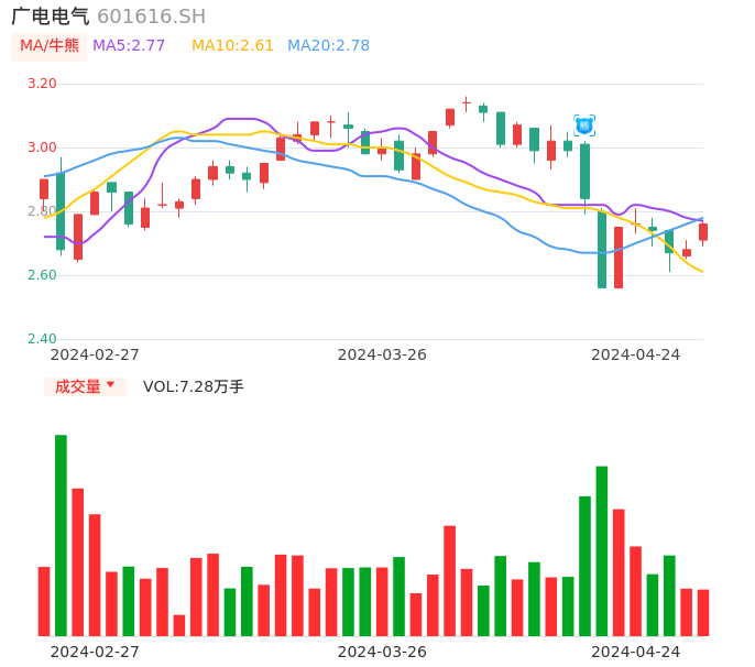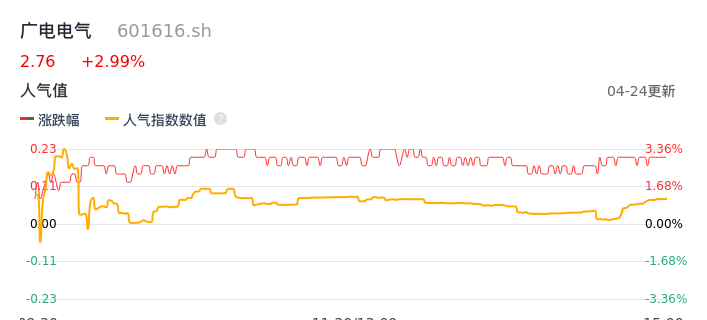 04月24日,广电电气收报2.76,股价涨幅2.99%,成交金额1997.66万元,换手率0.85%。