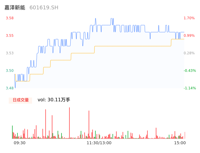 04月11日,嘉泽新能收报3.56,股价涨幅1.14%,成交金额1.07亿元,换手率1.24%。