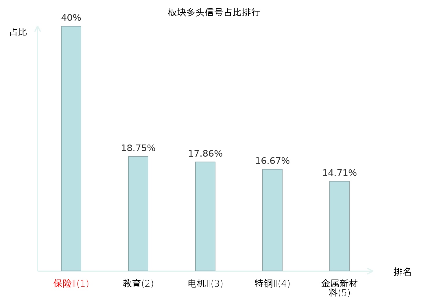 全市场所有行业板块中主力多头信号占比排名中,保险Ⅱ板块位居第一。保险Ⅱ板块名次提升最快,较昨日上升124位。