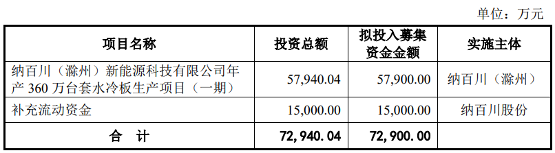 招股书显示,纳百川专注从事新能源汽车动力电池热管理、燃油汽车动力系统热管理及储能电池热管理相关产品的研发、生产和销售,主要产品包括电池液冷板、电池集成箱体、燃油汽车发动机散热器、加热器暖风等。