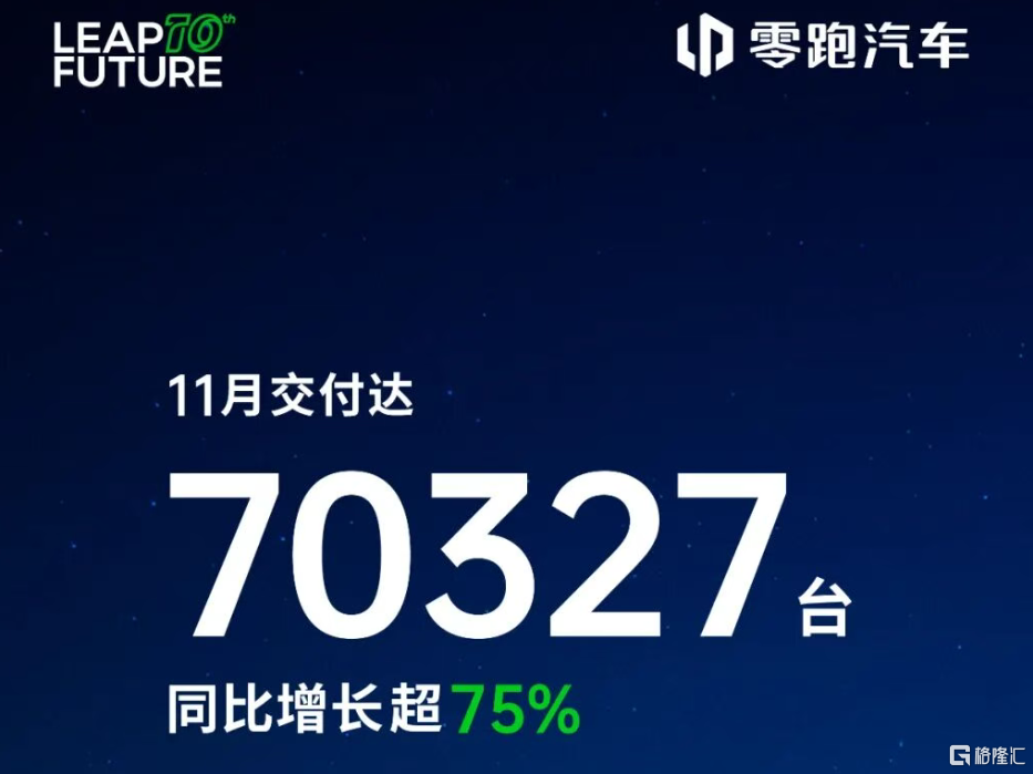 同样保持强劲增长的还有零跑汽车。11月,零跑全系交付再创新高达70327台,同比增长超75%,持续刷新月销纪录,并已连续九个月保持强劲增长态势。
