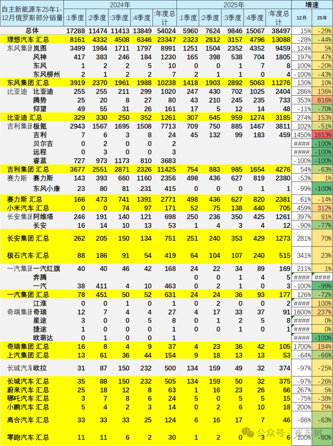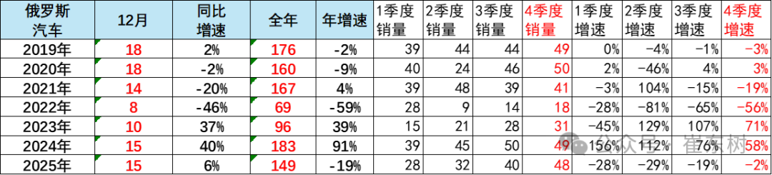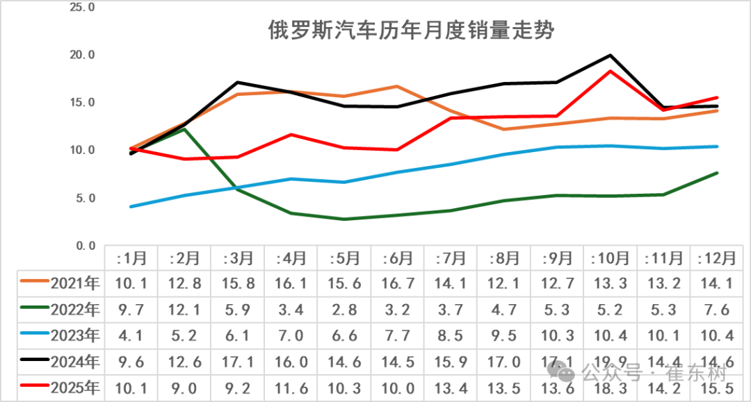 智通财经APP获悉,崔东树发文称,2025年12月俄罗斯汽车销量达到15万辆的水平,同比增6%;2025年全年俄罗斯车市的累计销量149万辆,同比下降19%。由于前期中国出口中亚和俄罗斯的车辆逐步过剩建立库存,2025年是自主在俄罗斯去库存的艰难时期,但2025年4季度开始已经走过。2025年1-12月俄罗斯的中国自主车企份额回升到57.2%,12月自主车企在俄罗斯份额回升到54.7%。