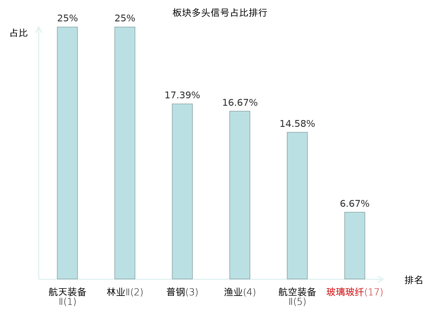 全市场所有行业板块中主力多头信号占比排名中,航天装备Ⅱ板块位居第一。林业Ⅱ板块名次提升最快,较昨日上升124位。