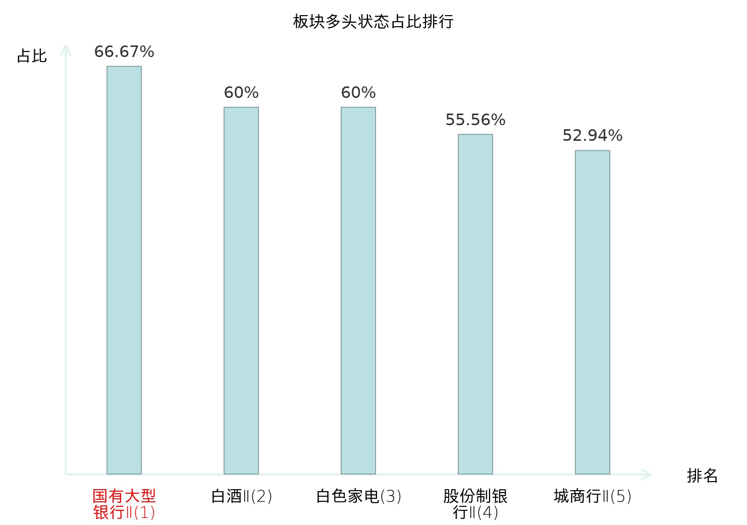 全市场所有行业板块中主力多头状态占比排名中,国有大型银行Ⅱ板块位居第一。医疗美容板块名次提升最快,较昨日上升110位。
