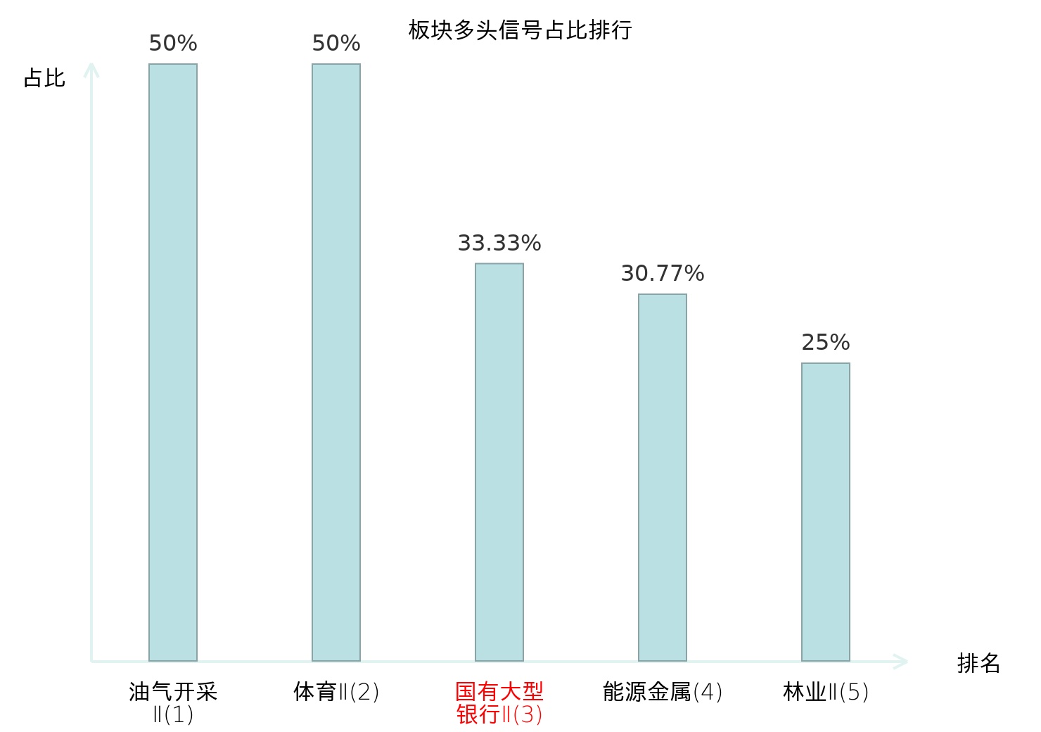 全市场所有行业板块中主力多头信号占比排名中,油气开采Ⅱ板块位居第一。体育Ⅱ板块名次提升最快,较昨日上升129位。