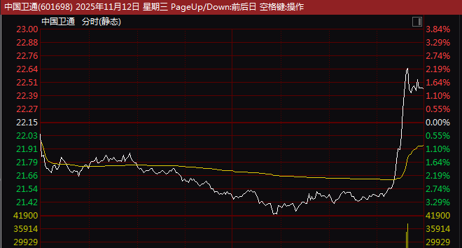 航天装备概念股临近收盘集体拉升,下午2点半左右,板块指数由跌逾3%,仅用约15分钟放量拉至涨逾2%。同时间内中国卫星(600118)由跌逾3%直线一度拉涨至逾5%,中国卫通、中天火箭、航天电子等尾盘均出现异动拉升走势。