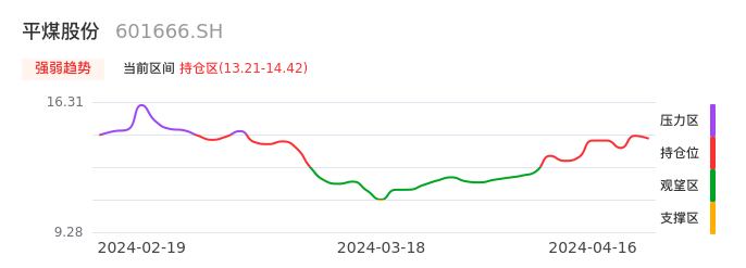我们来看一下该股的九方特色指标强弱趋势的情况:平煤股份自04月03日从观望区上穿到持仓区。股价近期在多头区域持续强势上扬,上升动能仍较为充足,可积极关注。后续重点关注上方压力位:14.42元是否能突破上攻。