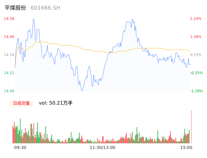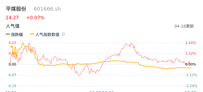 04月16日,平煤股份收报14.27,股价涨幅0.07%,成交金额7.21亿元,换手率2.04%。