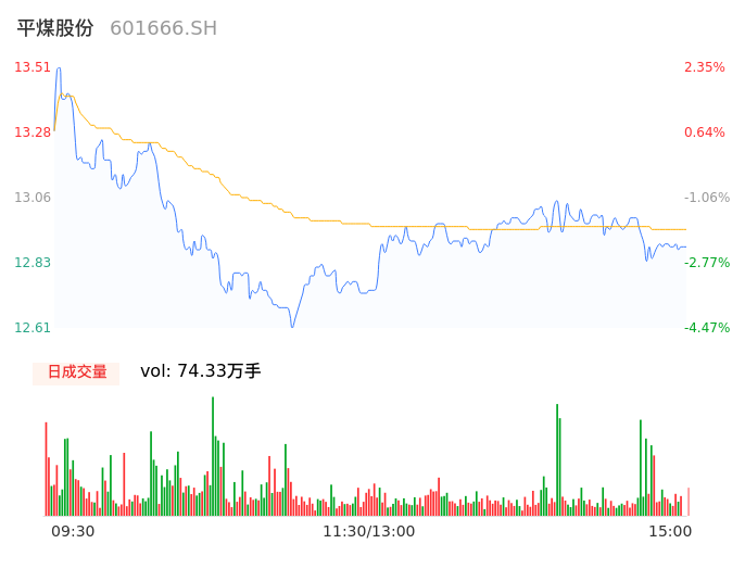 04月26日,平煤股份收报12.89,股价涨幅-2.35%,成交金额9.63亿元,换手率3.02%。