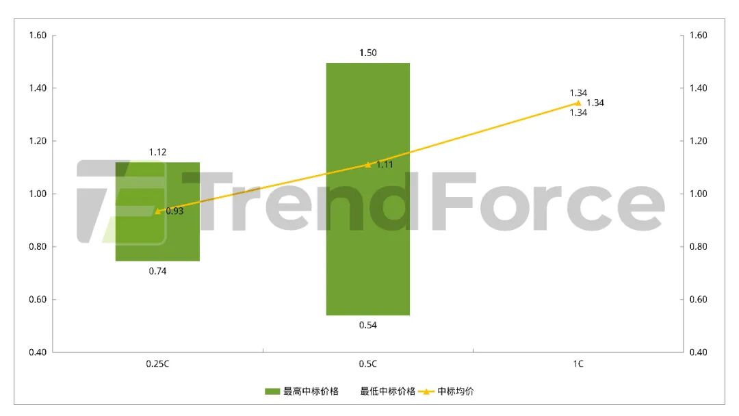 4小时储能EPC中标价格区间为0.74-1.12元/Wh,加权平均价为0.93元/Wh,环比+24%。