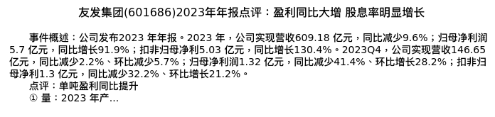 值得注意的是:2024年04月民生证券的邱祖学/任恒分析师,首次发布关于友发集团的研究报告,标题为:友发集团(601686)2023年年报点评:盈利同比大增 股息率明显增长。