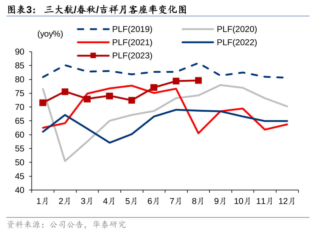春秋吉祥客座率进一步提升,接近19年同期水平