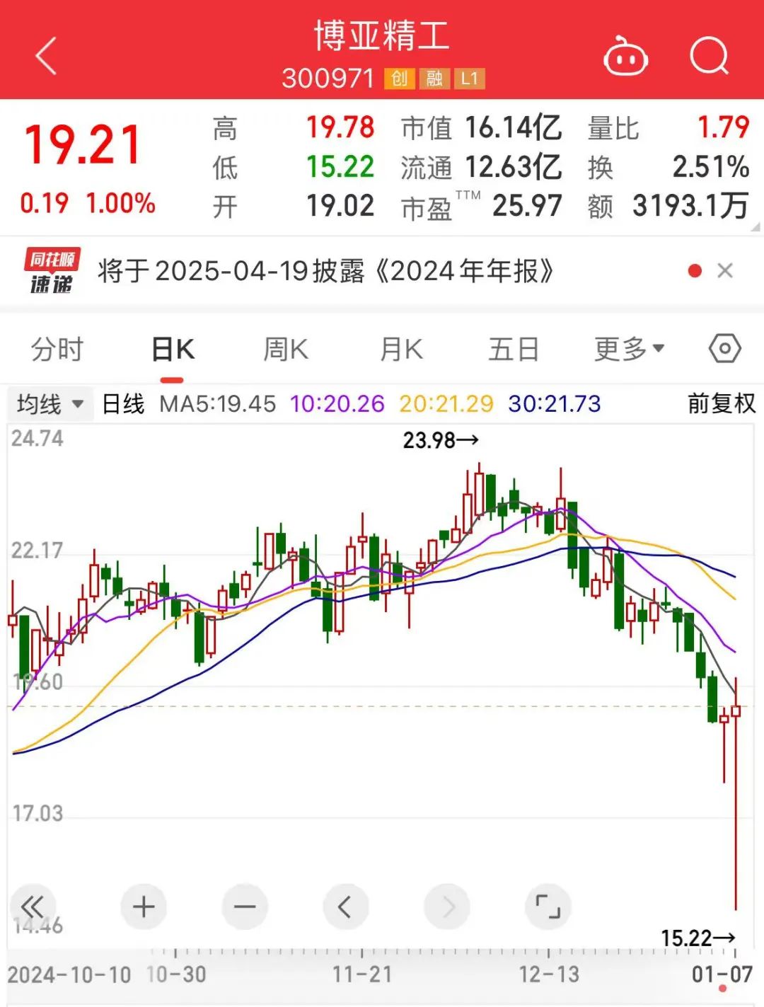 博亚精工早盘发生罕见一幕,该股平价开盘,9时30分开盘的第一笔成交953手,股价直接被砸至跌停板,单笔成交金额145万元。但很快公司股价又被拉升,早间收盘涨幅为1%。