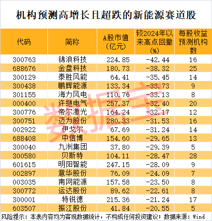 高增长潜力的超跌新能源赛道股出炉