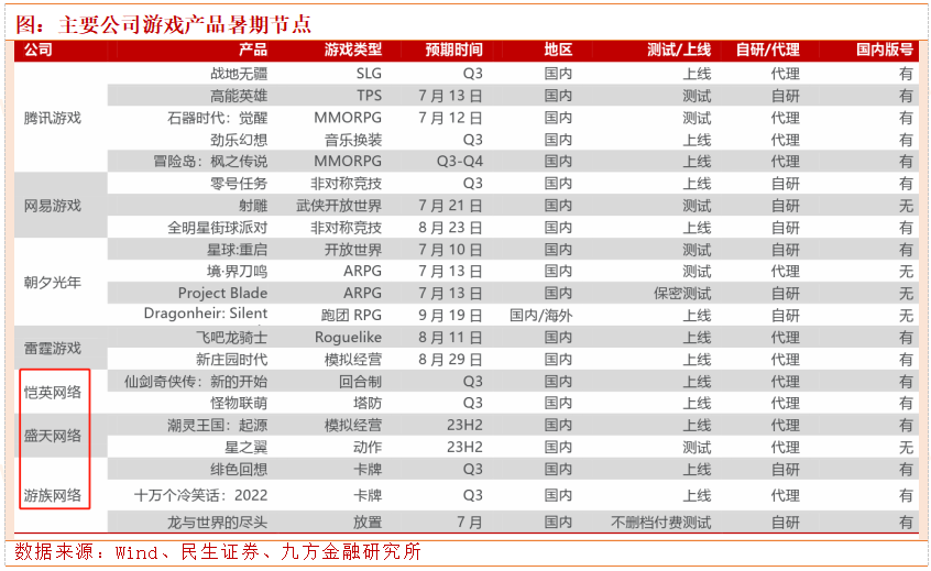 暑期新游戏上线的A股公司有:吉比特(雷霆游戏)、恺英网络、盛天网络、游族网络等。