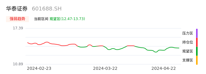 我们来看一下该股的九方特色指标强弱趋势的情况:华泰证券自04月03日从持仓区下穿到观望区,股价近期持续走弱。短期已经进入空头行情,且下跌动能仍未衰竭。建议继续谨慎观望。