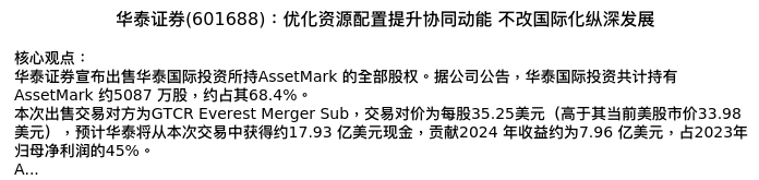 值得注意的是:2024年04月广发证券的陈福分析师,首次发布关于华泰证券的研究报告,标题为:华泰证券(601688):优化资源配置提升协同动能 不改国际化纵深发展。