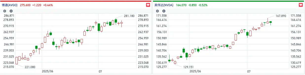 短线而言,自上周英伟达市值突破4万亿美元大关,登顶全球市值宝座后,AI叙事热度便开始在市场中逐渐重燃。叠加英伟达、博通等海外巨头股价已率先突破前高,也对AI算力概念的情绪面产生带动。