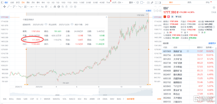 从全年表现来看,今年以来,锂矿板块累计涨幅已达111.4%,涨势尤为迅猛。