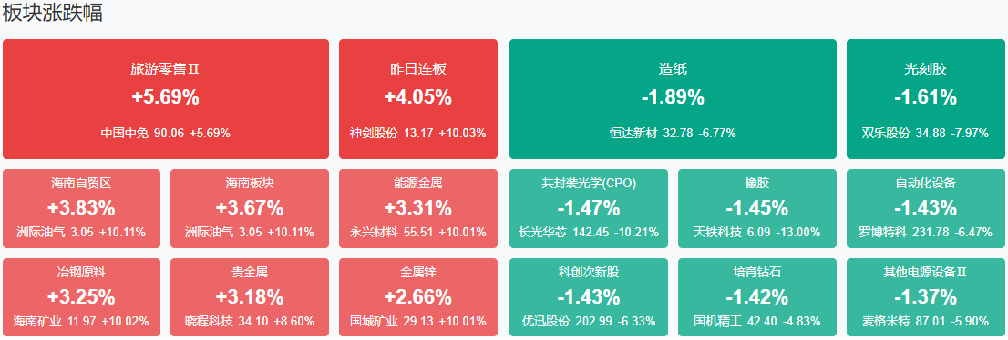 板块方面,海南、锂电产业链、贵金属板块活跃,造纸、CPO调整。截至收盘,沪指跌0.19%,深成指涨0.17%,创业板指跌0.15%。