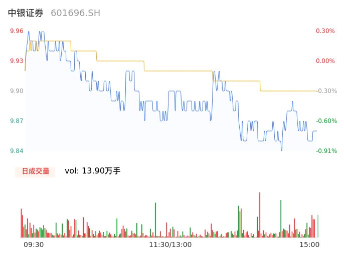 04月23日,中银证券收报9.85,股价涨幅-0.81%,成交金额1.38亿元,换手率0.50%。